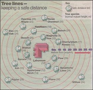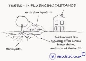 This is the distance in which a tree may be able to cause damage to the subject property. It is not quite as simple as our sketch; it depends on the tree, its maturity, the soil type etc., etc.